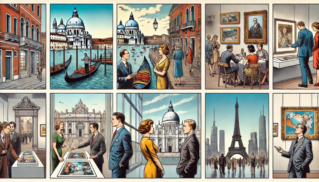 In 1951, he created Max, the marmot protagonist of a textless homonymous comic strip, which became very successful, not only in Europe but also in the United States and Japan. Pericle gained international fame from his work as an illustrator, which was published by Macmillan in New York and in newspapers including the Washington Post and the Herald Tribune, and appeared in the British satirical magazine Punch. In order to keep his two professions separate, the artist signed his illustrations under the surname Giovannetti. In 1958, he reached an artistic turning point, signaling a new phase in his creative production by destroying all but one of the figurative paintings works from his early years. He moved on to informal abstractionism and specialized in working techniques that characterized his works, the product of tireless research and experimentation.